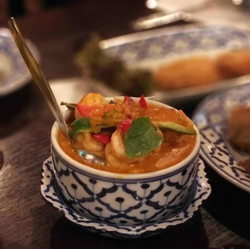 ランチのイサーンセットか、夜メニューで、竹の籠みたいなのに入ったもち米がおいしいので、レッドカレーを注文の際は是非一緒に。